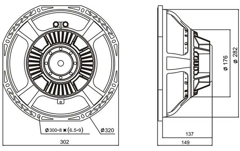 Voice coil diameter 75(3) mm (in.)